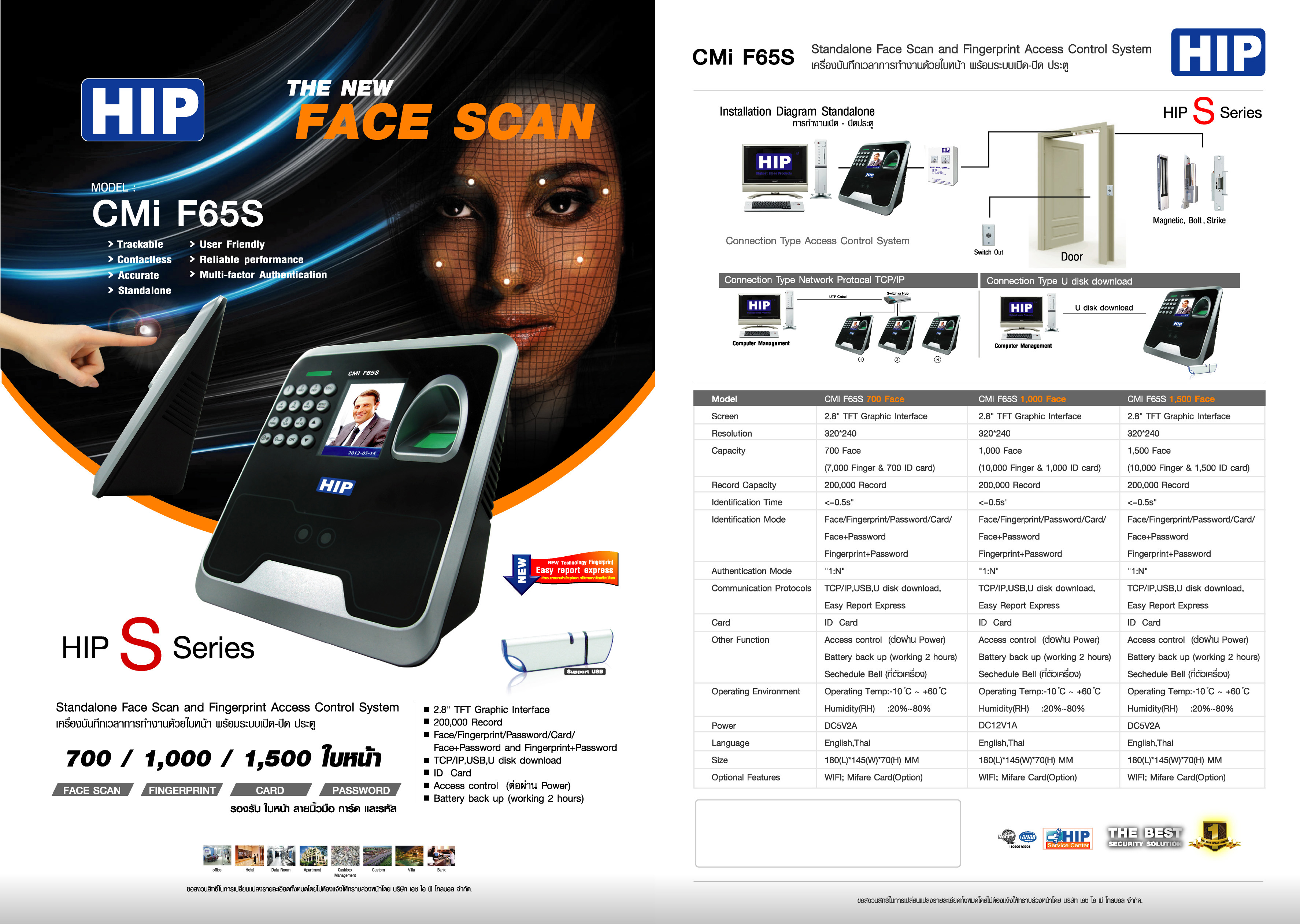 คุณสมบัติหลัก Main specification HIP Facescan ,Fingerscan , Card CMI F65S