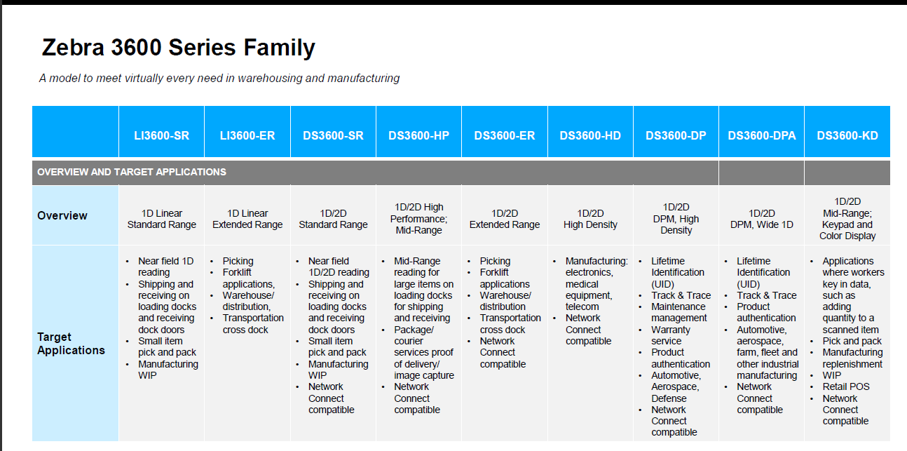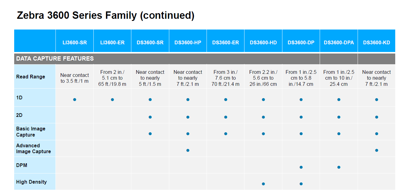 คุณสมบัติหลัก Main specification Barcode Scanner Wireless Zebra DS3678 (1D,2D)
